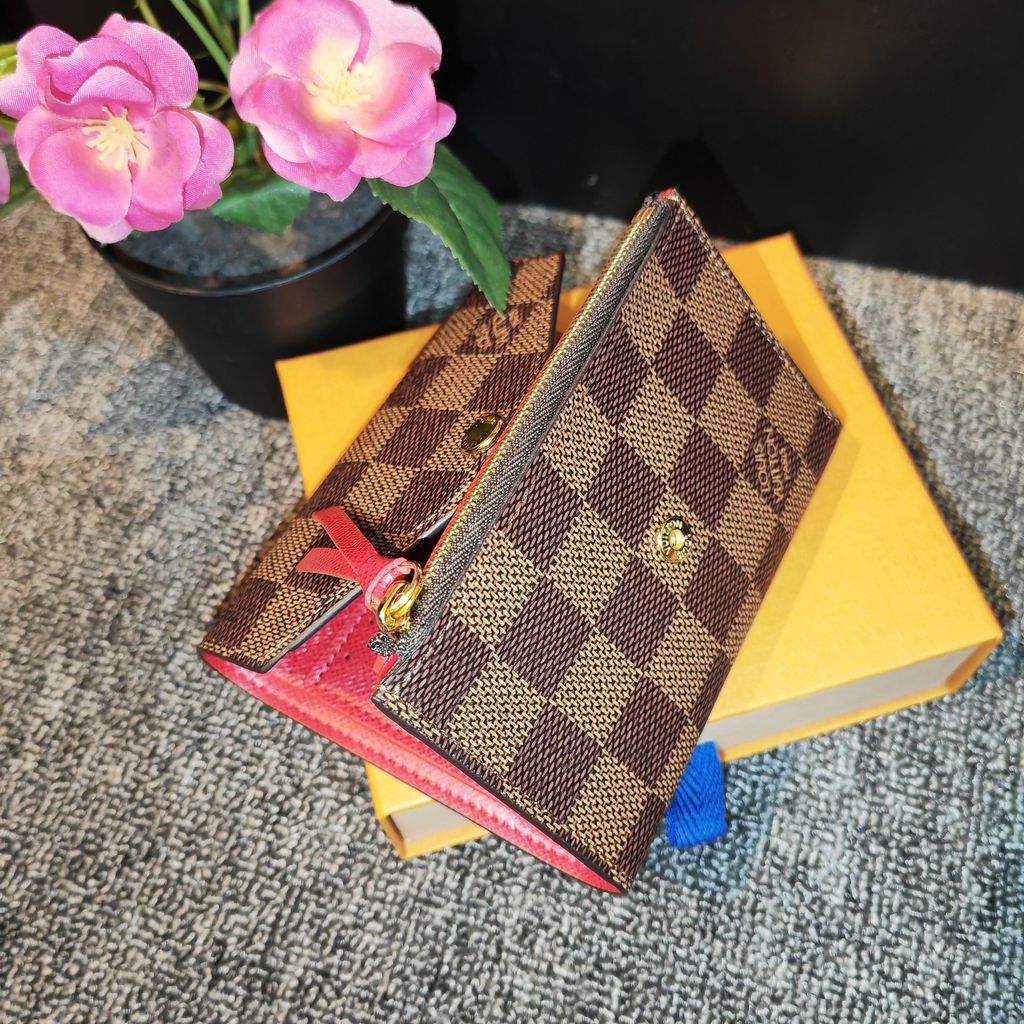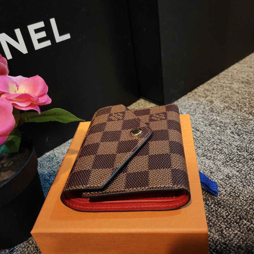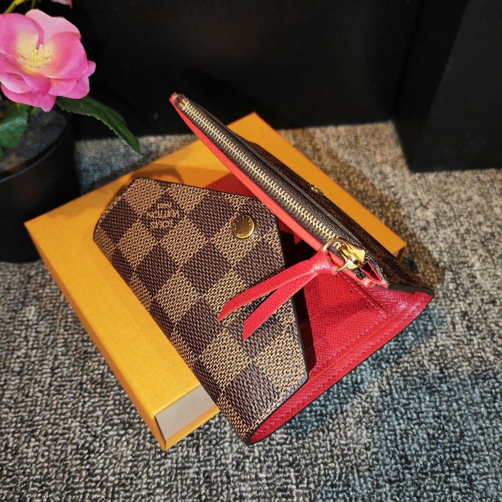 (NEW) Louis Vuitton Damier Ebene Victorine Wallet (Red)