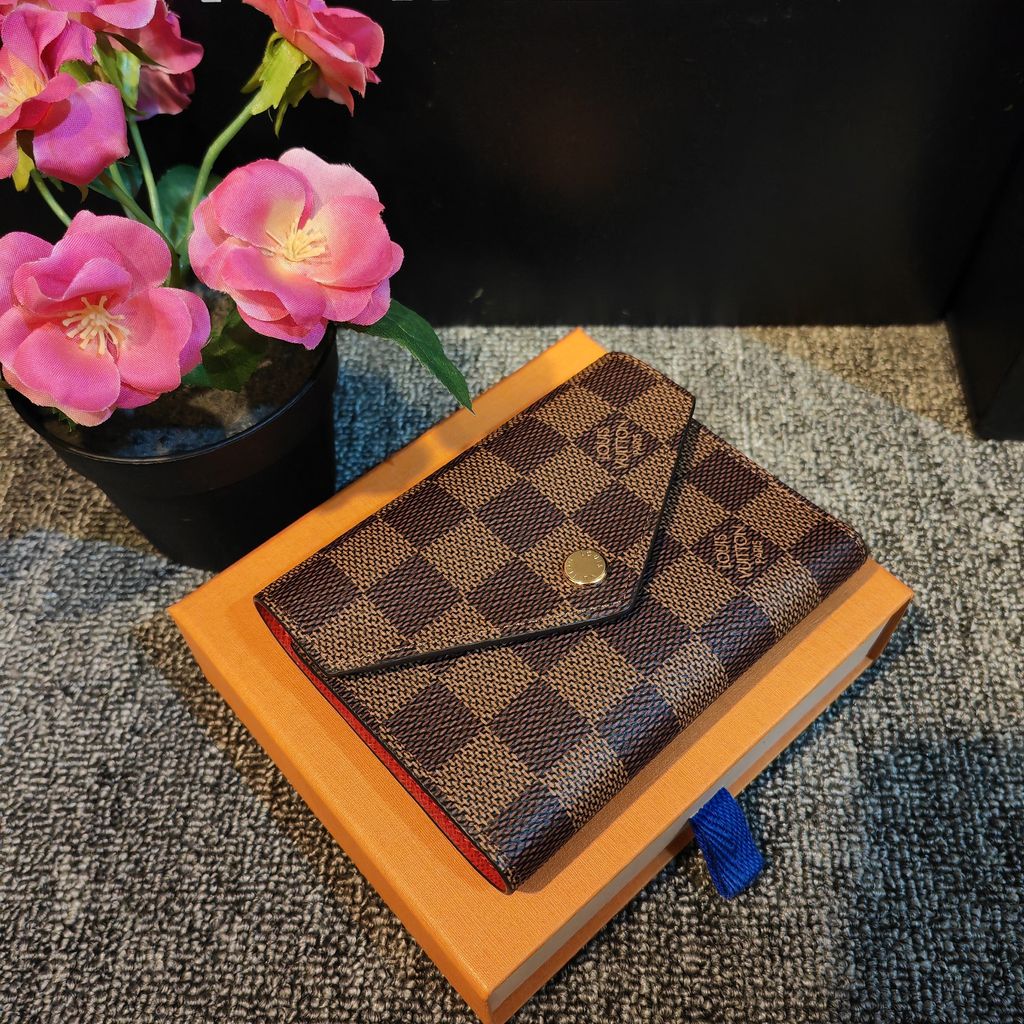 (NEW) Louis Vuitton Damier Ebene Victorine Wallet (Red)